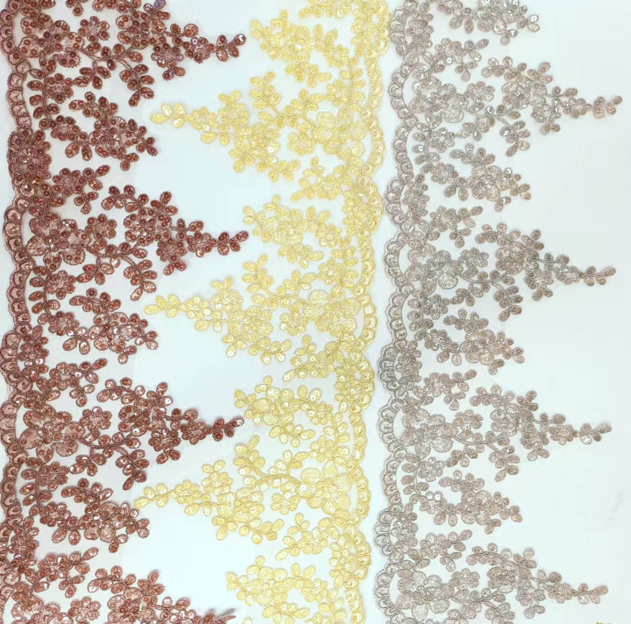 Luxury Bridal French Lace Gaun Pengantin Payet Border Lace untuk Wedding Lace Menampilkan pangkalan renda Prancis kelas atas, payet berkilau yang dijahit tangan, polanya sangat indah dan tiga dimensi, dengan tekstur ringan dan halus. Dekorasi kelas atas yang dirancang khusus untuk gaun pengantin dan gaun malam, tersedia dalam gading putih, emas sampanye dan nada lainnya, mendukung lebar dan pola kustom, menyoroti gaya mewah dan romantis