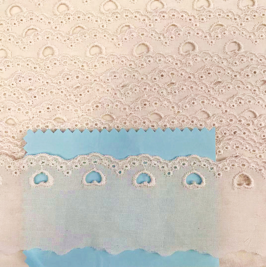 Kapas floret putih dengan tepi bergelombang trim renda yang terbuat dari kapas murni, ia memiliki bunga kecil tiga dimensi dengan tepi bergelombang, membuatnya lembut, bernapas dan retro secara alami. Sangat cocok untuk dekorasi pakaian anak-anak, pakaian wanita, barang-barang rumah tangga, dll. Ini ramah lingkungan dan ramah kulit, dapat dicuci dengan mesin, dan menawarkan berbagai pilihan lebar. Kustomisasi didukung.