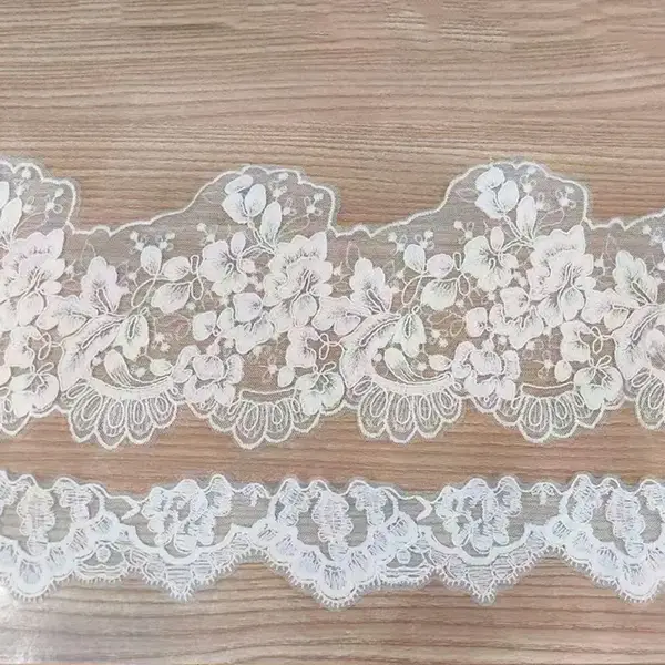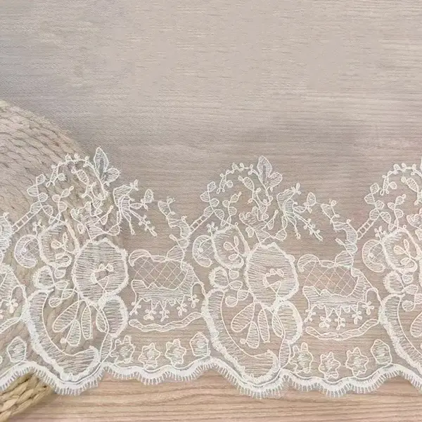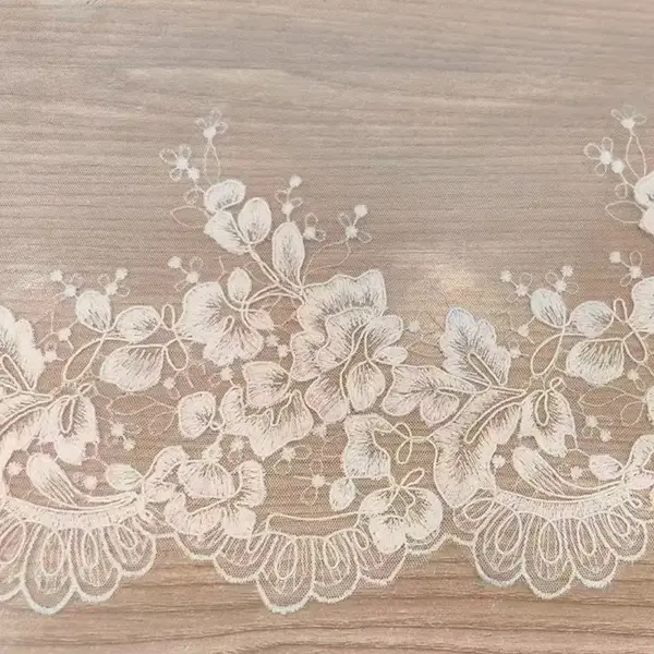 Renda bersulam poliester klasik yang sangat indah untuk pakaian wanita yang menampilkan pola bunga bersulam yang rumit, sempurna untuk pakaian formal wanita, mode pengantin, dan overlay yang halus. Kain yang ringan namun tahan lama menawarkan tirai anggun dengan kecanggihan abadi. Ideal untuk gaun, lengan, kerudung, dan pakaian dalam. Tersedia dalam gading klasik, hitam, dan putih. Cuci tangan atau siklus mesin lembut yang disarankan. Pilihan premium untuk desain couture dan pakaian acara khusus. Dijual di halaman di pemasok kain khusus.